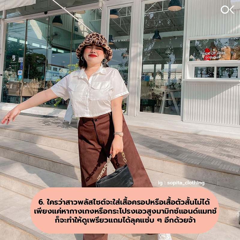 - ใครว่าสาวพลัสไซต์จะใส่เสื้อครอปหรือเสื้อตัวสั้นไม่ได้ เพียงแค่หากางเกงหรือกระโปรงเอวสูงมามิกซ์แอนด์แมทช์ก็จะทำให้ดูเพรียวแถมได้ลุคแซ่บ ๆ อีกด้วยจ้า