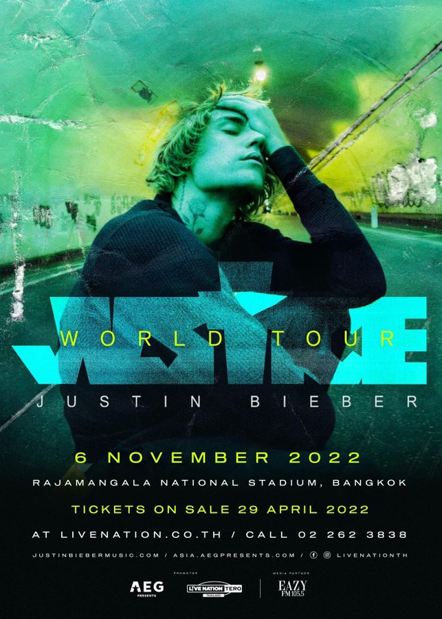 เปิดจองบัตรเป็นที่เรียบร้อยแล้วสำหรับ คอนเสิร์ต “JUSTIN BIEBER JUSTICE WORLD TOUR BANGKOK” ที่จะจัดขึ้นที่สนามราชมังคลากีฬาสถาน วันที่ 6 พฤศจิกายน พ.ศ.2565 นี้
