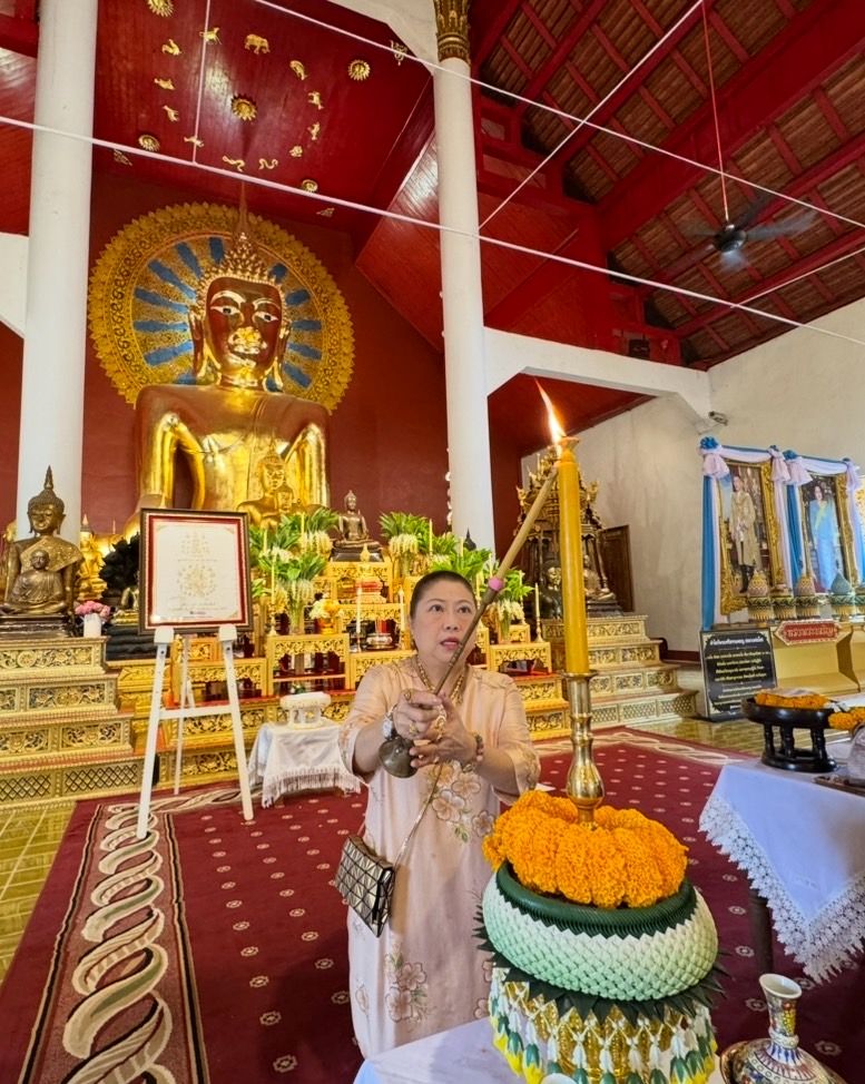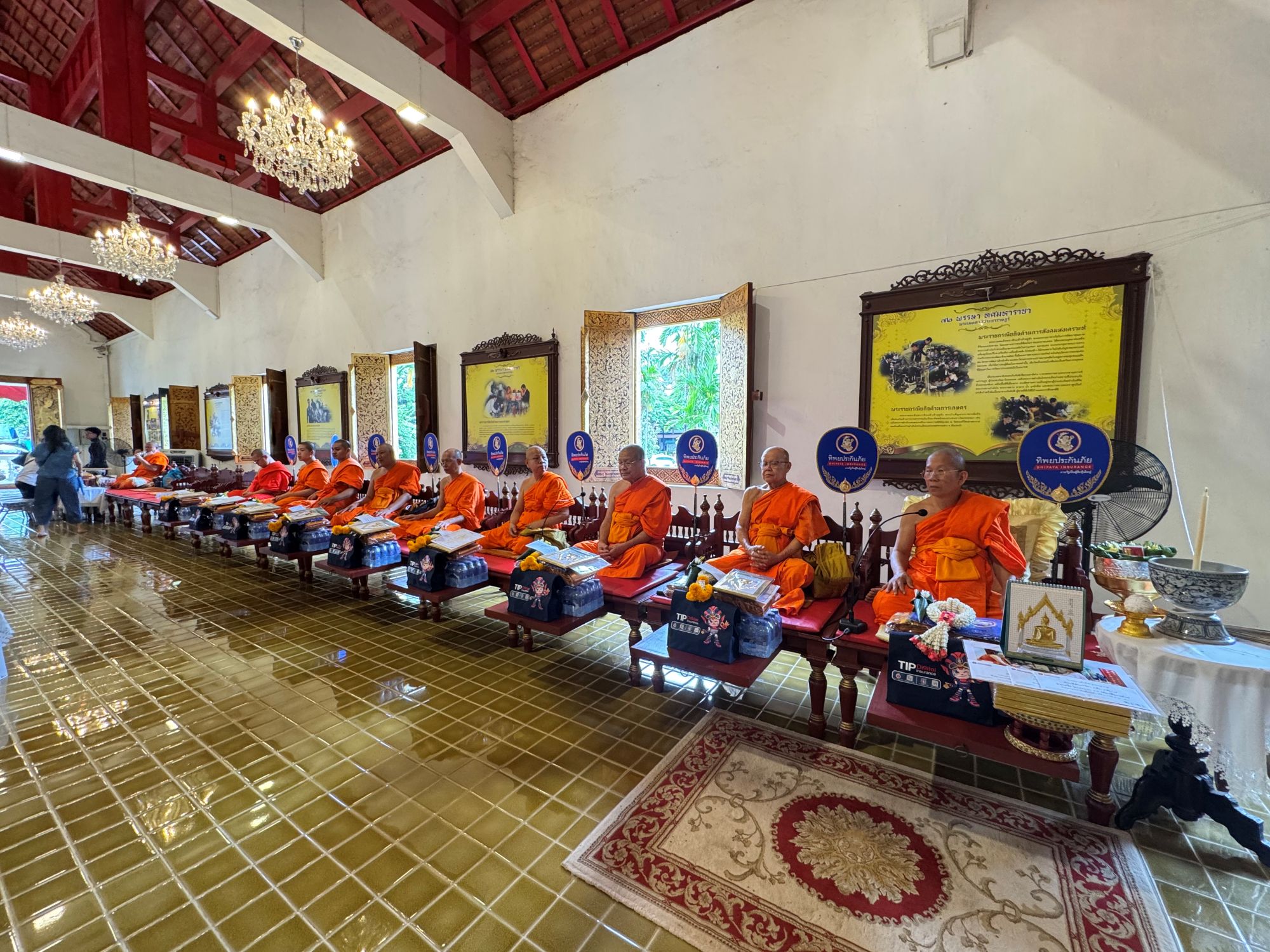 ในโอกาสนี้ ได้รับความเมตตาจาก พระเทพสิงหวราจารย์ เจ้าอาวาสวัดพระสิงห์วรมหาวิหาร และรองเจ้าคณะจังหวัดเชียงใหม่ มาเป็นประธานฝ่ายสงฆ์ พร้อมด้วยพระภิกษุสงฆ์รวม 9 รูป ประกอบพิธีเจริญพระพุทธมนต์ ถวายสังฆทาน และจตุปัจจัยไทยธรรม พร้อมทั้งถวายปัจจัยเพื่อบำรุงศาสนสถาน และถวายภัตตาหารเพลแด่พระภิกษุสงฆ์ทั้งวัด พร้อมน้อมนำบุญมหากุศล อุทิศผลบุญแด่กัลยาณมิตร และแผ่เมตตาไม่มีประมาณทั้งสามแดนโลกธาตุ ณ วิหารหลวง วัดพระสิงห์วรมหาวิหาร จังหวัดเชียงใหม่