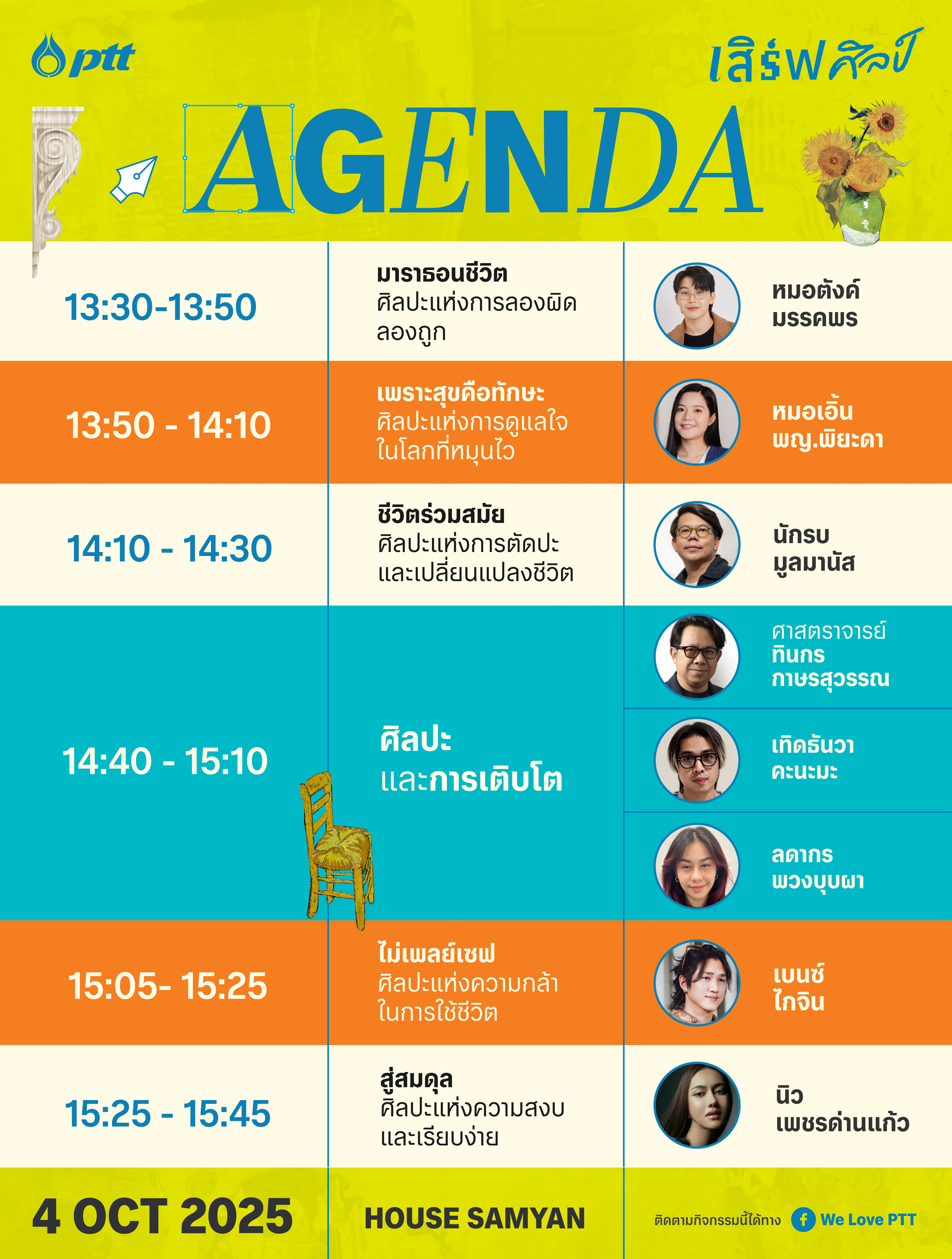 19 ก.ย. 2568 00:00เพราะศิลปะไม่ได้อยู่แค่ในแกลเลอรี่ แต่แทรกอยู่ในทุกจังหวะของชีวิต และเราอยากเปิดโอกาสให้ทุกคนได้เข้ามามีส่วนร่วมมากที่สุด