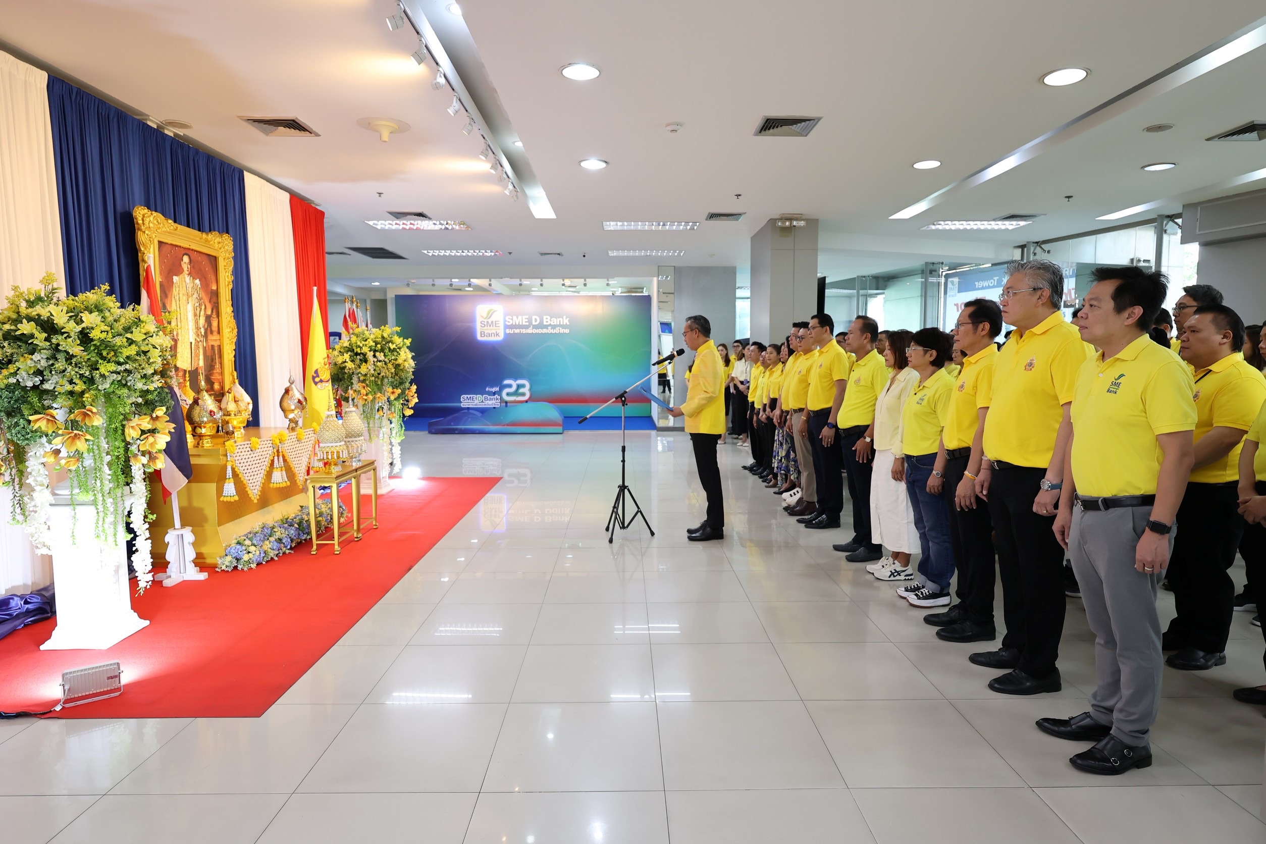 ธนาคารพัฒนาวิสาหกิจขนาดกลางและขนาดย่อมแห่งประเทศไทย (ธพว.) หรือ SME D Bank โดย นายพิชิต มิทราวงศ์ กรรมการผู้จัดการ พร้อมด้วยคณะผู้บริหารและเจ้าหน้าที่ ร่วมพิธีทำบุญตักบาตรถวายเป็นพระราชกุศล แด่พระบาทสมเด็จพระบรมชนกาธิเบศร มหาภูมิพลอดุลยเดชมหาราช บรมนาถบพิตร พระมหากษัตริย์ รัชกาลที่ 9 แห่งราชวงศ์จักรี เนื่องในวันนวมินทรมหาราช วันคล้ายวันสวรรคต วันที่ 13 ตุลาคม และพิธีวางพานพุ่มถวายราชสดุดี เพื่อน้อมรำลึกในพระมหากรุณาธิคุณเป็นล้นพ้นอันหาที่สุดมิได้ ณ บริเวณชั้น 1 สำนักงานใหญ่ SME D Bank อาคาร SME Bank Tower เมื่อวันที่ 10 ตุลาคม 2568