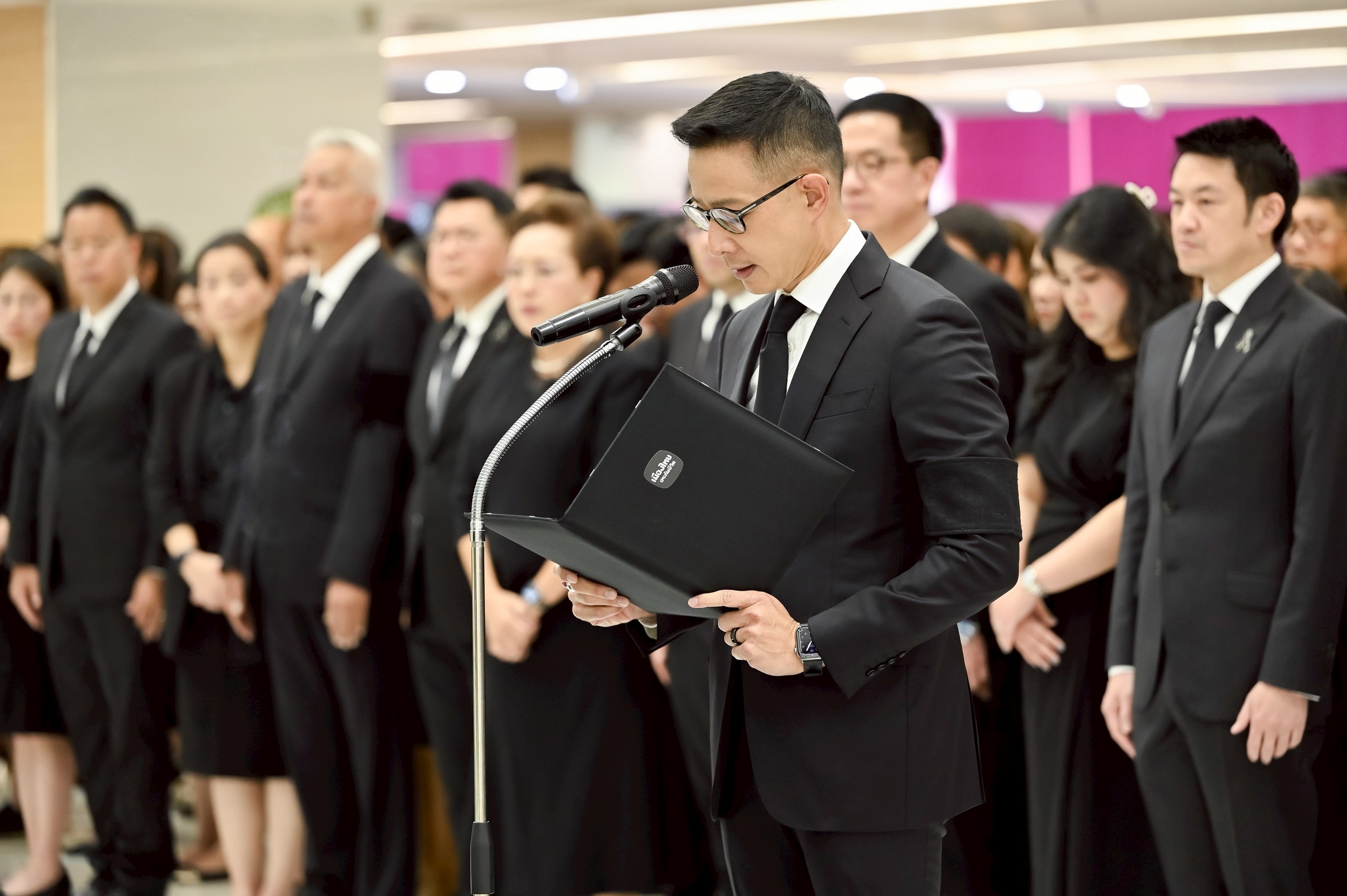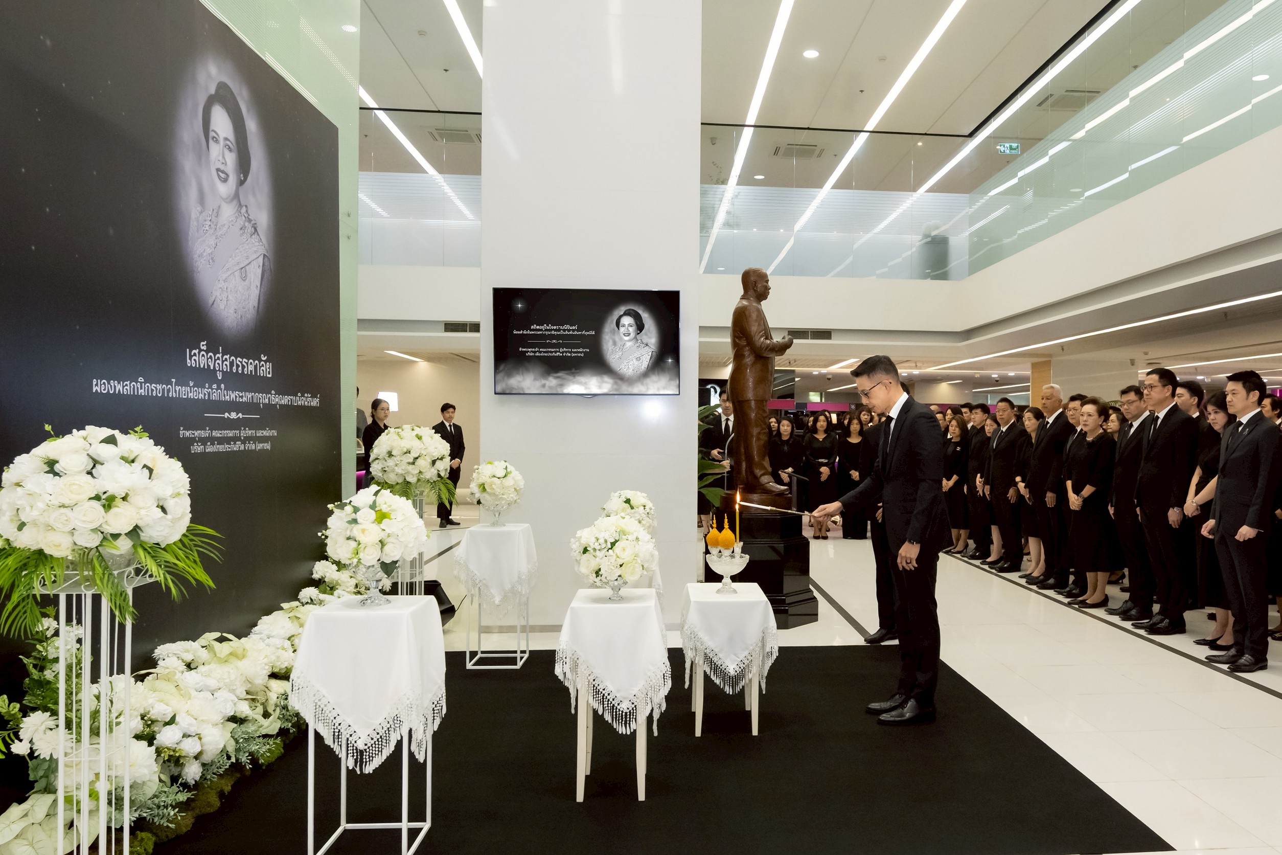 ในโอกาสนี้ นายสาระ ล่ำซำ ประธานเจ้าหน้าที่บริหาร ได้กล่าวถวายความอาลัย พร้อมกันนี้ คณะผู้บริหารและพนักงาน ได้พร้อมใจกันยืนสงบนิ่ง และลงนามในสมุดถวายความอาลัย เพื่อแสดงความจงรักภักดี และน้อมรำลึกถึงพระมหากรุณาธิคุณที่ทรงมีต่อพสกนิกรชาวไทย ตลอดระยะเวลาที่ทรงปฏิบัติ พระราชกรณียกิจน้อยใหญ่นานัปการ ตามที่ทรงตั้งพระราชปณิธานอย่างแน่วแน่ ในการบำเพ็ญ พระราชกรณียกิจมาตลอดพระชนม์ชีพ เพื่อบำบัดทุกข์บำรุงสุข แก่พสกนิกรชาวไทยในทุกหนแห่ง