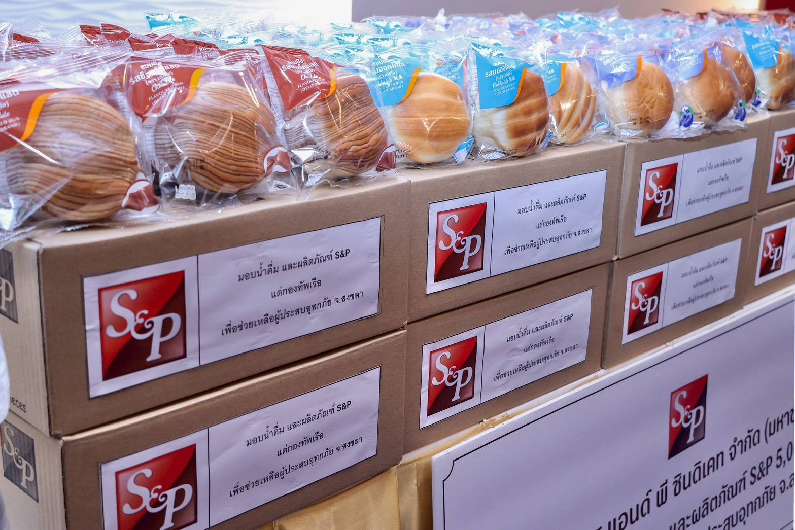 บมจ.เอส แอนด์ พี ซินดิเคท ส่งมอบน้ำดื่ม และผลิตภัณฑ์ขนมปังเดลิโอ S&P มูลค่ารวม 400,104 บาท เพื่อช่วยบรรเทาความเดือดร้อนของประชาชนผู้ประสบอุทกภัยพื้นที่จังหวัดสงขลา และจังหวัดใกล้เคียง ภายใต้โครงการ “S&P รวมใจช่วยภัยน้ำท่วม ปี 2568”