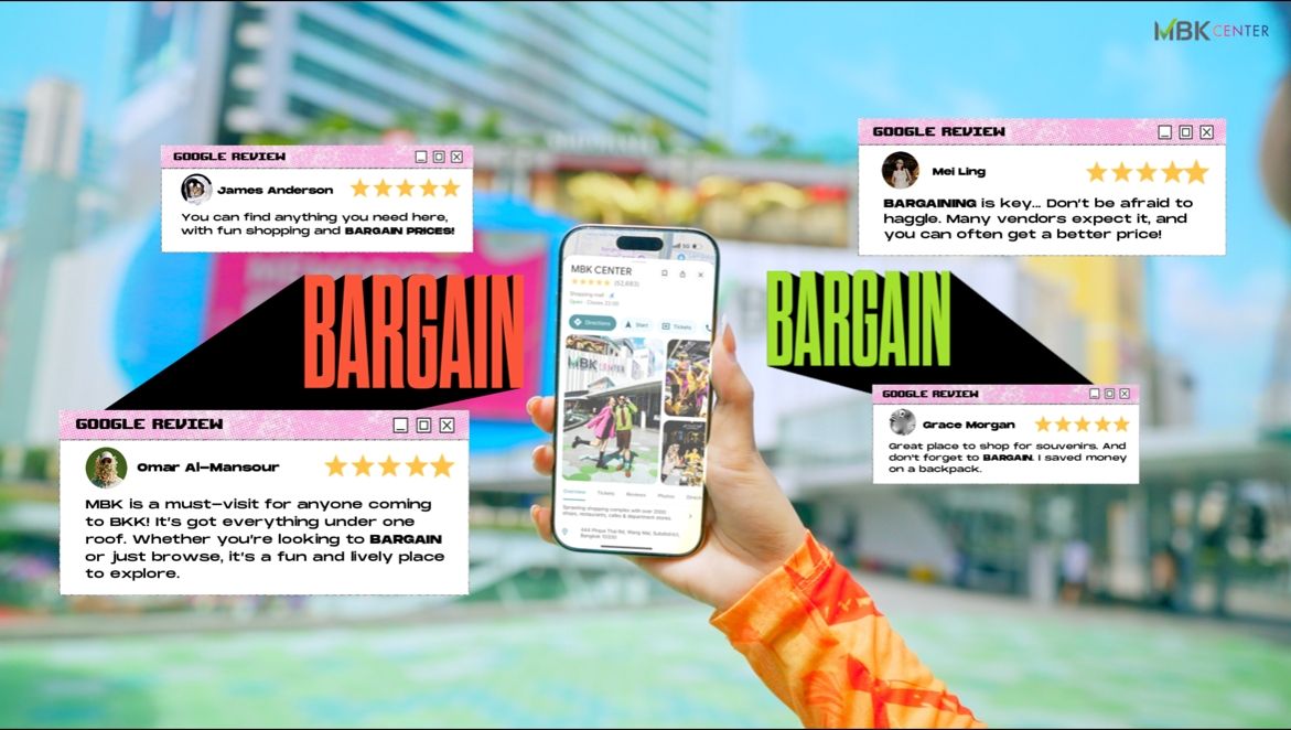 สำหรับการนำเสนอเนื้อหาในวิดิโอแคมเปญ Step into Thainess – Shop like a Thai ก้าวสู่เสน่ห์ความเป็นไทย ช้อปสนุกสไตล์ไทยแท้ ได้นำไฮไลท์ Cultural Experience + Lifestyle Hub ที่ได้จากการวิเคราะห์ข้อมูลเชิงลึกพฤติกรรมนักท่องเที่ยว (Traveler Insights) จากประสบการณ์จริงที่เคยมา MBK Center ผ่านการแสดงความเห็นใน Google Review ซึ่งชื่นชอบความสนุกสนานในการต่อรองราคาสไตล์ไทย และจะนำประสบการณ์ที่ประทับใจนี้ไปบอกปากต่อปากเชิญชวนให้คนอื่นๆ ได้มาสัมผัสด้วยตัวเอง ซึ่งศิลปะการต่อรองราคาแบบไทยๆ (Bargain like a Thai) เป็นรูปแบบการช้อปปิ้งอันเป็นเอกลักษณ์ของคนไทยที่สะท้อนเสน่ห์ความเป็นท้องถิ่นและเป็นประสบการณ์ที่นักท่องเที่ยวจากทั่วโลกสามารถมีส่วนร่วม ความสนุกที่เต็มไปด้วยรอยยิ้มในบรรยากาศอบอุ่นเป็นกันเอง ซึ่งนับเป็นเสน่ห์ของเอ็ม บี เค เซ็นเตอร์ ที่แตกต่างจากศูนย์การค้าทั่วไป ซึ่งนักท่องเที่ยวต่างชาติไม่เพียงแต่ช้อปสนุกได้สินค้าคุณภาพในราคาที่พอใจแล้ว ยังได้สัมผัสถึงมิตรภาพที่งดงามอีกด้วย