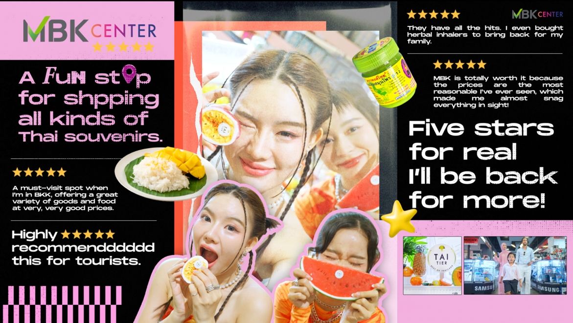 MBK Center พร้อมต้อนรับนักท่องเที่ยวจากทุกเชื้อชาติ ให้ได้สัมผัสประสบการณ์การช้อปปิ้งสไตล์ท้องถิ่นไทยแท้ และดื่มด่ำวัฒนธรรมไทยแบบครบวงจร ทั้งในมุมที่งดงามและร่วมสมัย ช้อป ชิม ชิล สนุกกับการท่องเที่ยววิถีไทยที่รวมไว้ในที่เดียว มุ่งมั่นให้ทุกการมาเยือนเป็นประสบการณ์ที่น่าจดจำ ผ่านวิดิโอแคมเปญที่ถ่ายทอดประสบการณ์จริงจากนักท่องเที่ยวทั่วโลก ภายใต้แนวคิด Step into Thainess – Shop like a Thai สามารถเข้าชมวิดีโอแคมเปญได้ที่ลิงก์ https://youtu.be/_8DchqpEKEE?si=UnjMYQaDRg65JnSN