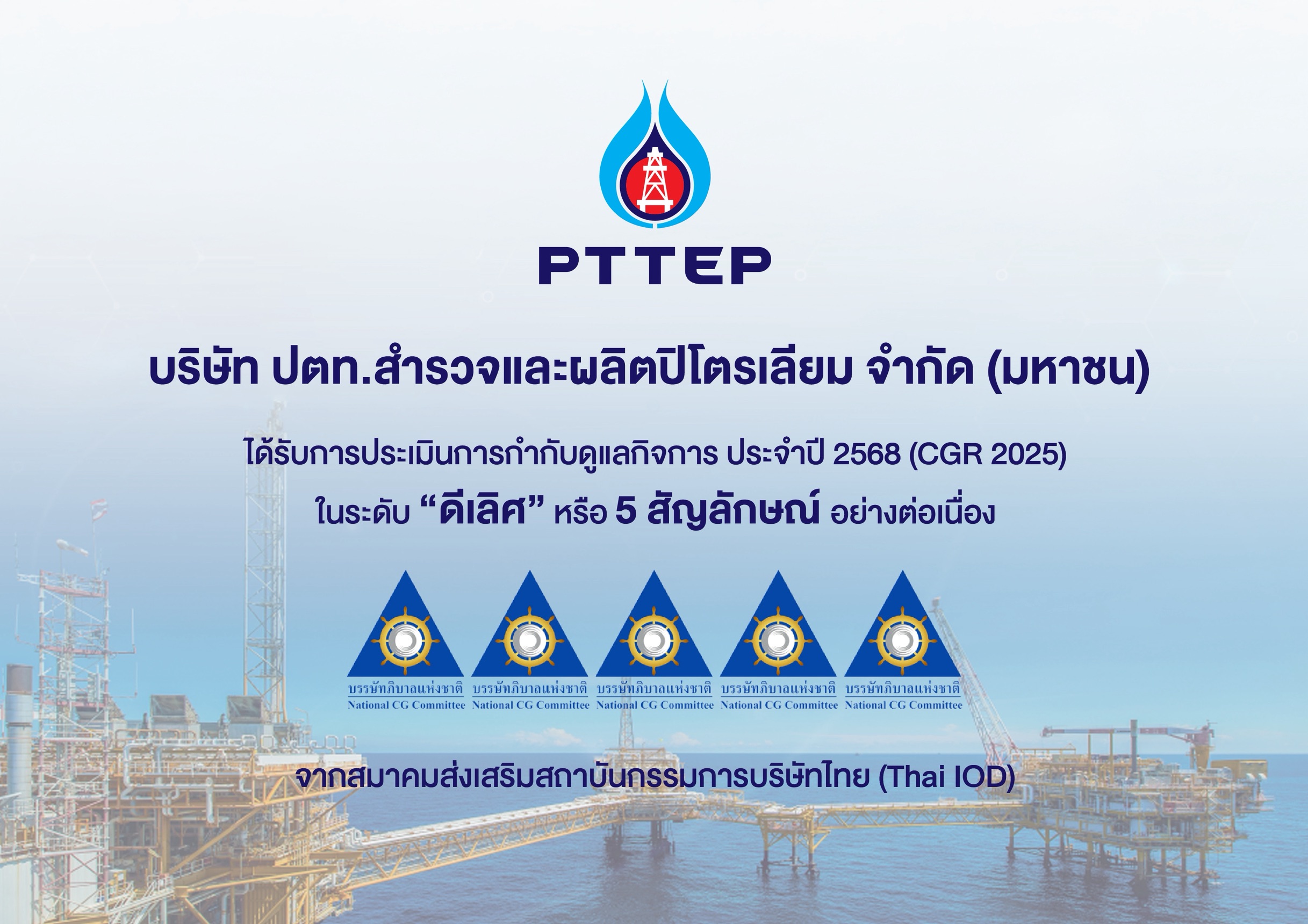 บริษัท ปตท.สำรวจและผลิตปิโตรเลียม จำกัด (มหาชน) หรือ ปตท.สผ. ได้รับการประเมินด้านการกำกับดูแลกิจการในระดับดีเลิศ (Excellent) หรือ 5 สัญลักษณ์ ซึ่งเป็นระดับสูงสุด ต่อเนื่องเป็นปีที่ 24 และได้รับการจัดอันดับอยู่ใน Top Quartile ของกลุ่มบริษัทจดทะเบียนที่มีมูลค่าทางการตลาดไม่น้อยกว่า 100,000 ล้านบาท จากการสำรวจการกำกับดูแลกิจการบริษัทจดทะเบียน ประจำปี 2568 (Corporate Governance Report of Thai Listed Companies หรือ CGR 2025) ซึ่งจัดขึ้นโดยสมาคมส่งเสริมสถาบันกรรมการบริษัทไทย (Thai IOD) สะท้อนถึงความมุ่งมั่นของ ปตท.สผ. ในการดำเนินธุรกิจภายใต้หลักการกำกับดูแลกิจการที่ดี อันเป็นรากฐานการพัฒนาองค์กรที่แข็งแกร่งและยั่งยืน