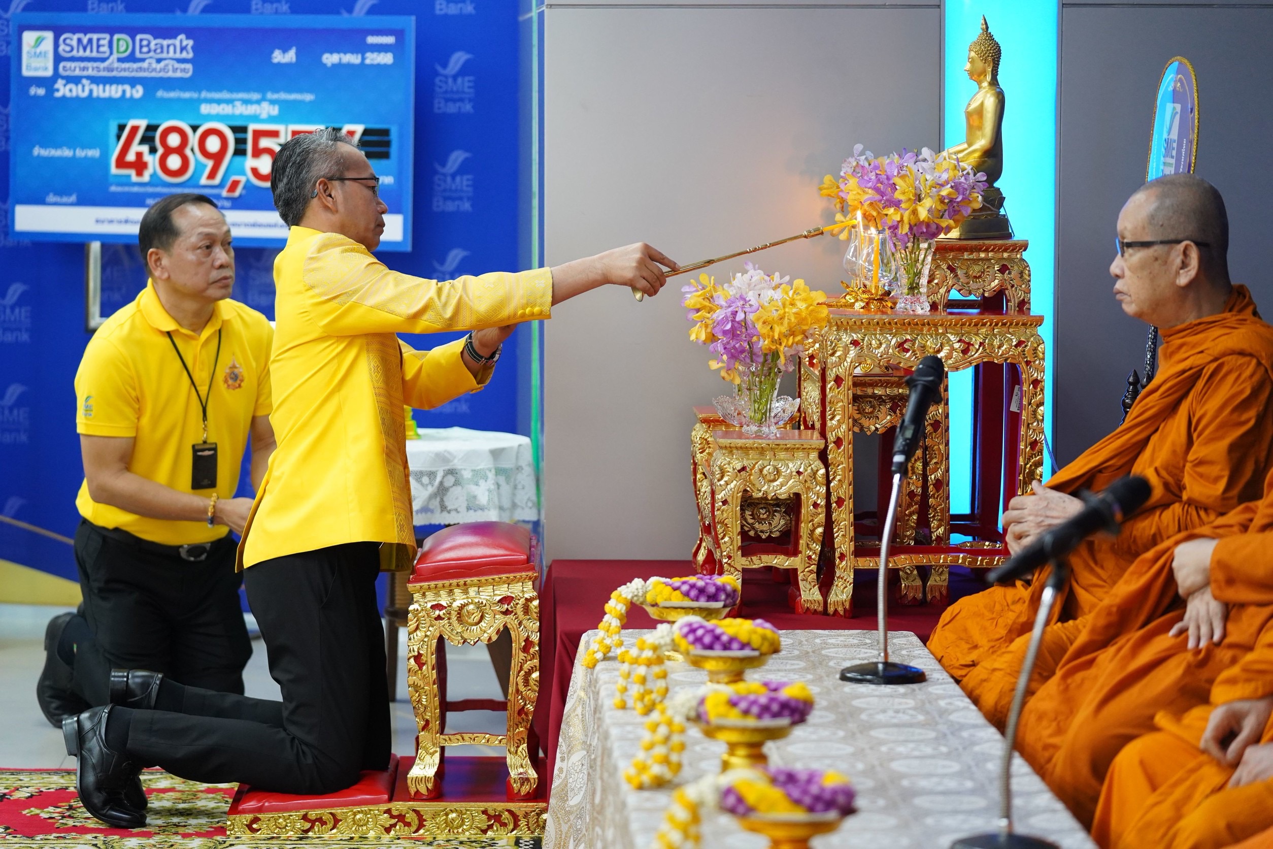ธนาคารพัฒนาวิสาหกิจขนาดกลางและขนาดย่อมแห่งประเทศไทย (ธพว.) หรือ SME D Bank โดย นายพิชิต มิทราวงศ์ กรรมการผู้จัดการ พร้อมด้วยคณะผู้บริหารและเจ้าหน้าที่ ร่วมพิธีทำบุญตักบาตรถวายเป็นพระราชกุศล แด่พระบาทสมเด็จพระบรมชนกาธิเบศร มหาภูมิพลอดุลยเดชมหาราช บรมนาถบพิตร พระมหากษัตริย์ รัชกาลที่ 9 แห่งราชวงศ์จักรี เนื่องในวันนวมินทรมหาราช วันคล้ายวันสวรรคต วันที่ 13 ตุลาคม และพิธีวางพานพุ่มถวายราชสดุดี เพื่อน้อมรำลึกในพระมหากรุณาธิคุณเป็นล้นพ้นอันหาที่สุดมิได้ ณ บริเวณชั้น 1 สำนักงานใหญ่ SME D Bank อาคาร SME Bank Tower เมื่อวันที่ 10 ตุลาคม 2568