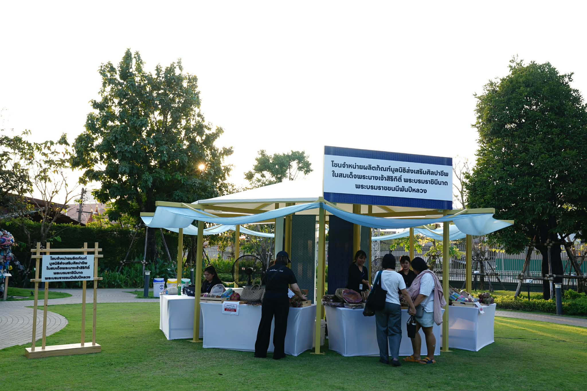 พร้อมทั้งเลือกซื้อผลิตภัณฑ์จากมูลนิธิส่งเสริมศิลปาชีพ ในสมเด็จพระนางเจ้าสิริกิติ์ พระบรมราชินีนาถ พระบรมราชชนนีพันปีหลวง ผลิตภัณฑ์งานฝีมือคุณภาพจากภูมิปัญญาท้องถิ่นที่คัดสรรมาอย่างดี สะท้อนคุณค่าหัตถกรรมไทยสู่สายตาโลก