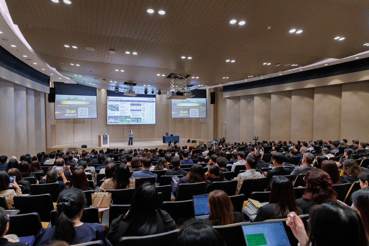 ในพระบรมราชูปถัมภ์ กล่าวเน้นย้ำถึงความสำคัญของมาตรฐาน ISSB ว่า “ความยั่งยืนและการเติบโตของธุรกิจเป็นเรื่องเดียวกัน และความน่าเชื่อถือจะเกิดขึ้นได้จากการเปิดเผยข้อมูลที่มีนัยสำคัญอย่างโปร่งใสให้ต่อผู้มีส่วนได้เสีย”