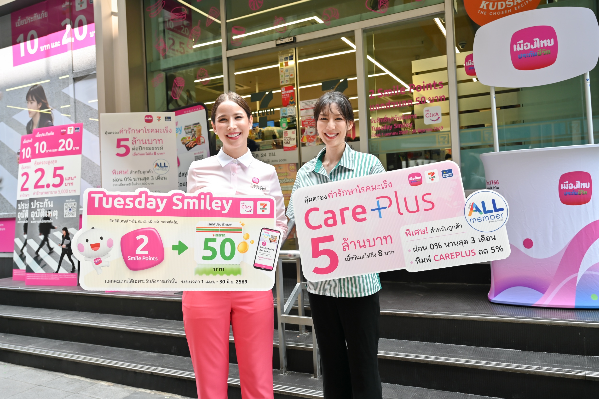 ด้านสมาชิกเมืองไทยสไมล์คลับ รับสิทธิพิเศษ Tuesday Smiley (M-Coupon) แลกคะแนนเฉพาะวันอังคารเท่านั้น ใช้เพียง 2 Smile Points แลกรับคูปองแทนเงินสดมูลค่า 50 บาท (2 สิทธิ์/1 ท่าน/ สัปดาห์) จำนวน 3,000 สิทธิ์ เพื่อชำระค่าสินค้าที่ 7-Eleven เพื่อนที่รู้ใจ ใกล้ๆ คุณ แลกรับสิทธิ์ได้ทาง MTL Click Application และแสดง Barcode ณ จุดชำระเงินร้าน 7-Eleven ระยะเวลากิจกรรมวันที่ 1 เมษายน 2569 - 30 มิถุนายน 2569