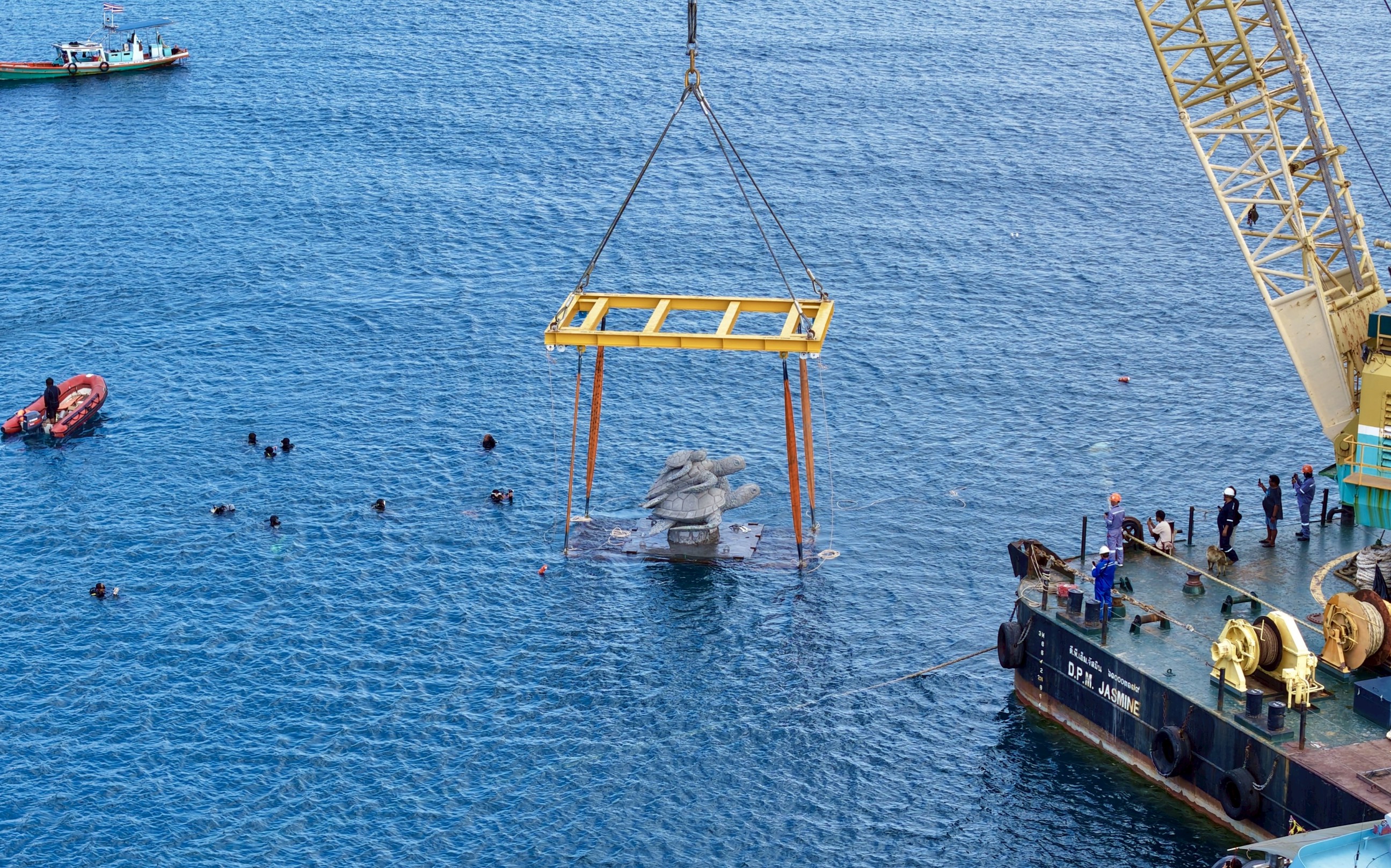 ลานประติมากรรมใต้ทะเลแห่งนี้ เกิดจากความร่วมมือระหว่าง ปตท.สผ. กรมทรัพยากรทางทะเลและชายฝั่ง มหาวิทยาลัยเกษตรศาสตร์ มหาวิทยาลัยศิลปากร สมาคมธุรกิจการท่องเที่ยวเกาะเต่า ชมรมรักษ์เกาะเต่า และชุมชนท้องถิ่น เพื่อร่วมกันพัฒนาแหล่งปะการังเทียมและส่งเสริมการท่องเที่ยวเชิงอนุรักษ์